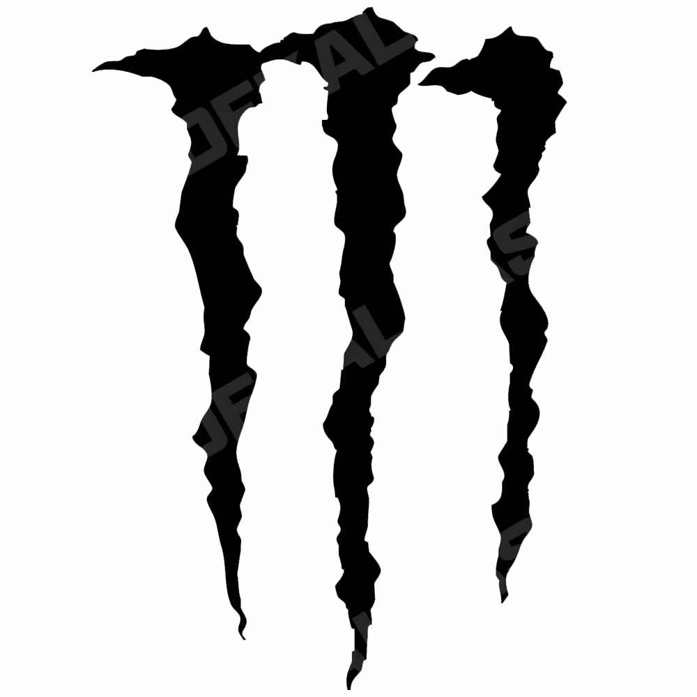 En dekal med det välkända “M”-klomärket från energidryckskulturen.