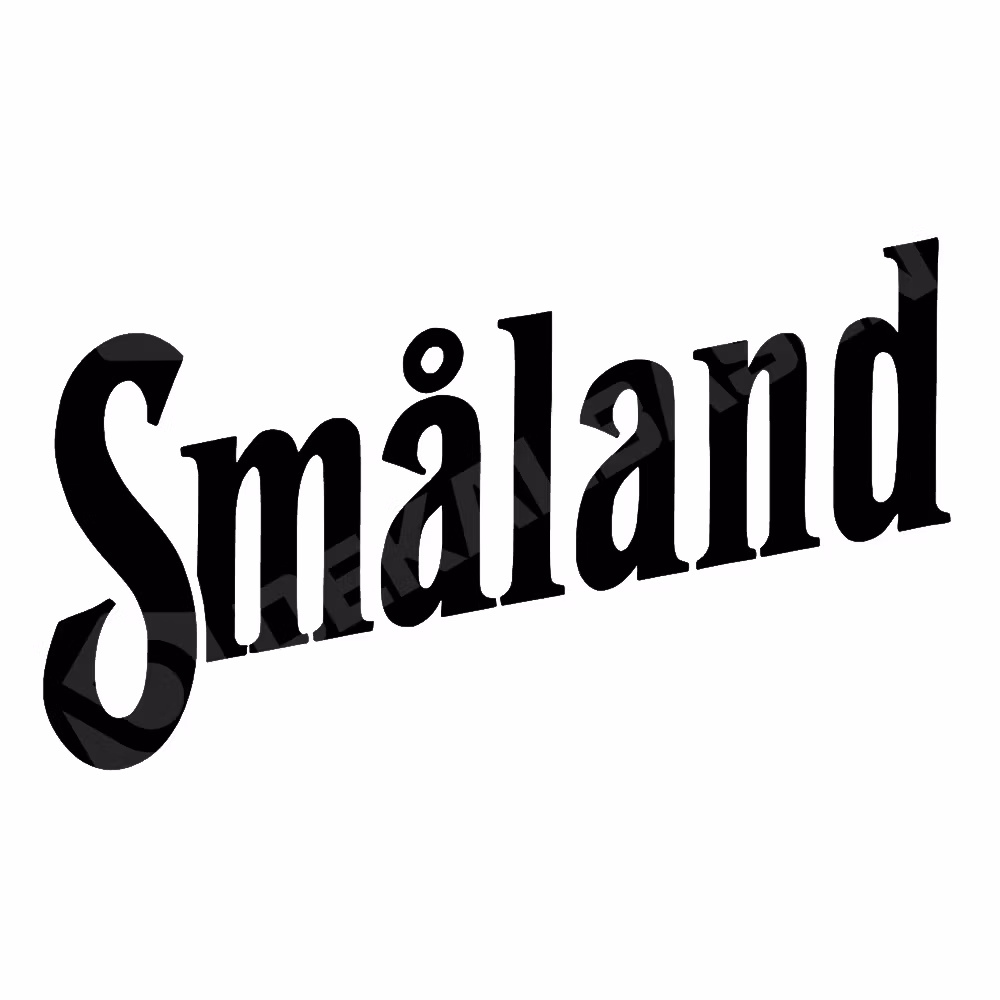 En dekal med texten Småland, baserad på den klassiska ölloggan.